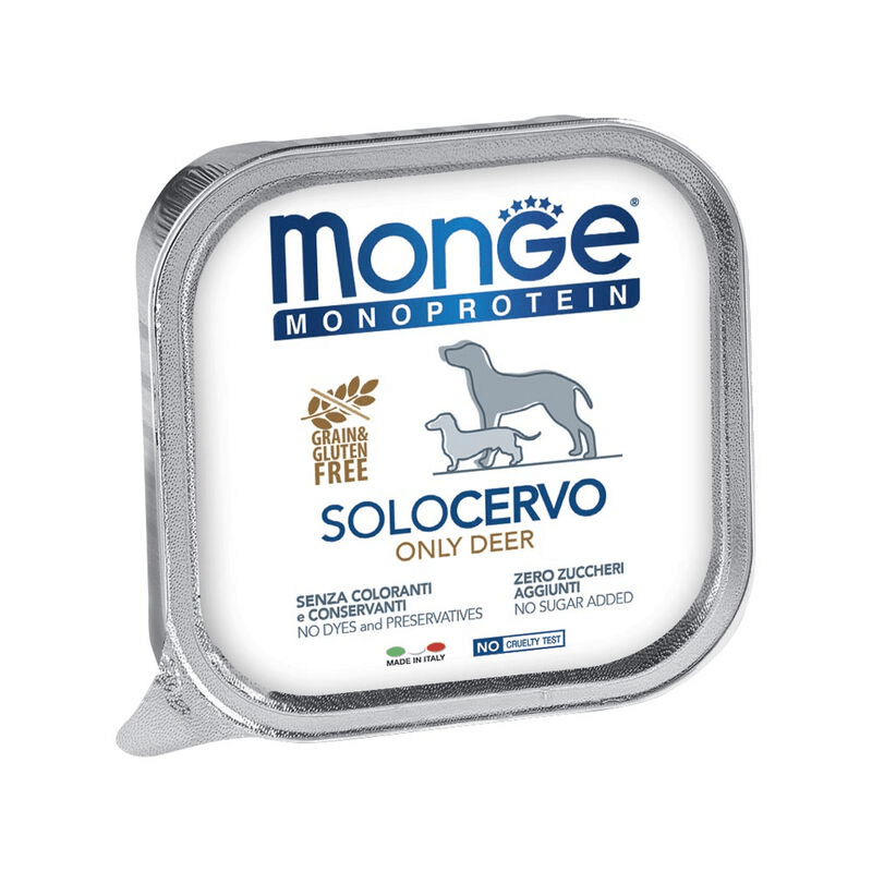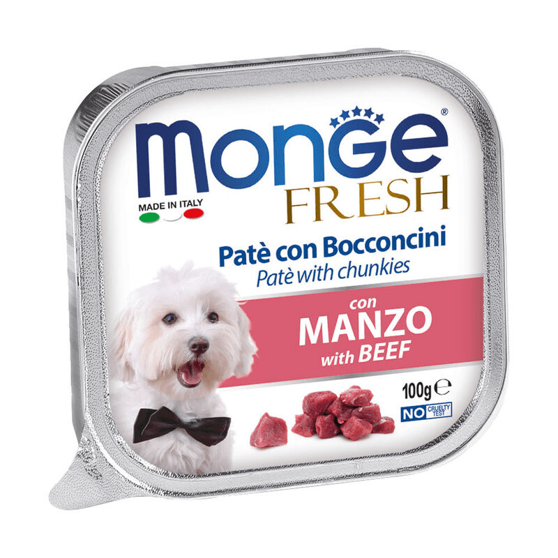 Monge per cani di piccola taglia è un alimento indicato soprattutto perché è venduto in vaschette o bustine costituite da un quantitativo già calcolato per il fabbisogno giornaliero del cane. Per un cane di 5 Kg si somministrano 3 vaschette di Monge paté cane al giorno. Questo paté di Monge ha la particolarità di contenere un paté morbido insieme a piccoli bocconcini da masticare. In cani di peso superiore ai 10 kg esistono in commercio lattine Monge da 400gr. con un prezzo che si aggira attorno a 2.70 euro. Ovviamente maggiore è la taglia del cane e più sarà dispendioso alimentarlo con un prodotto umido. Se il cane supera i 20 kg è consigliabile nutrirlo con le crocchette ossia il cibo secco per cani. Indicato per cani con difficoltà di masticazione.