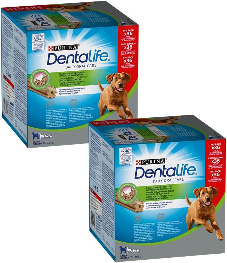 PURINA Dentalife Cane Snack per l’Igiene Orale Bastoncini di consistenza porosa e morbida, eliminano la placca mentre il cane li mastica. La pulizia avviene in modo meccanico, quindi lo sfregamento sui denti durante la masticazione elimina i residui di cibo. Non contiene pertanto sostanze chimiche. Come prodotto per la pulizia dei denti del cane anziano è valido, la scelta tra questo e il precedente dipende dai gusti del vostro cane.